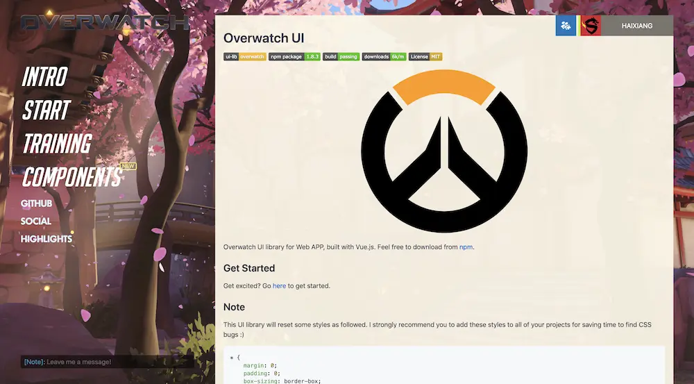 去年 12 月玩守望等匹配的时候就无聊萌生出做一套守望 UI 的想法,因为觉得守望的 UI 比较简洁,而且对于那些小组件的实现都有个大概的思路。当时 Hey UI 的作者也在知乎上宣传自己的 UI 库,所以更加坚定了做这个 UI 库的想法。