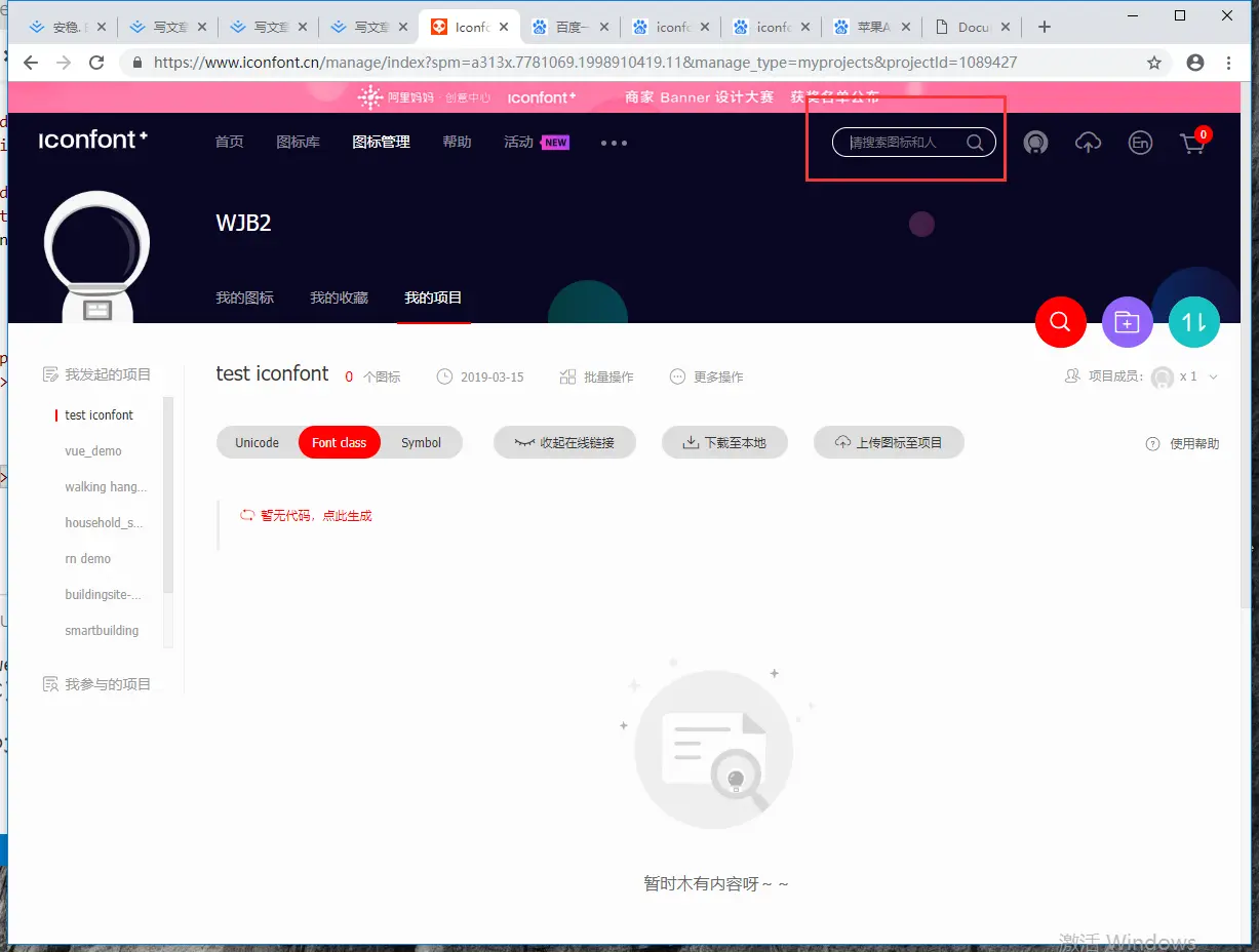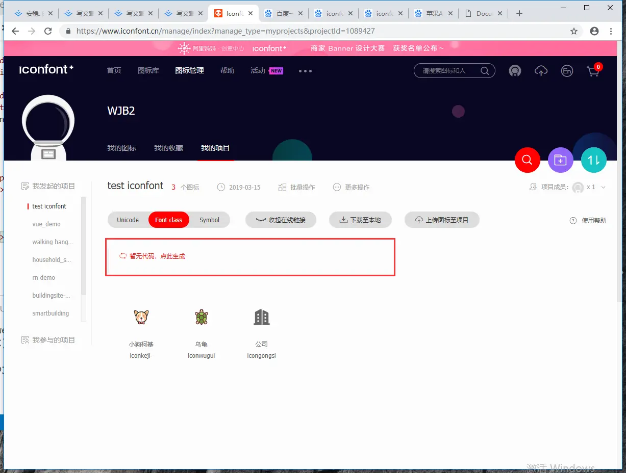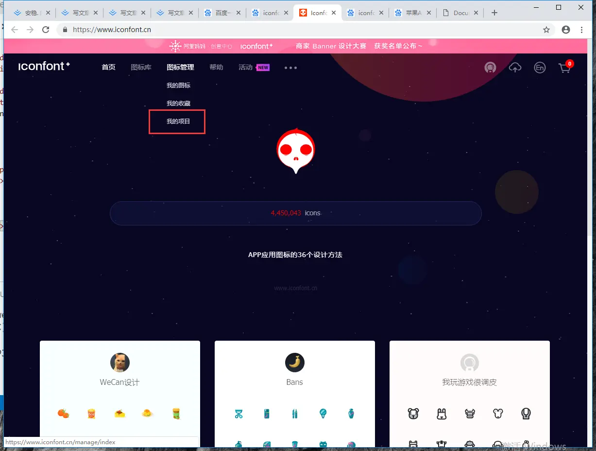 进入阿里iconfont官网,注册并登陆,登陆好以后在首页点击我的项目,。