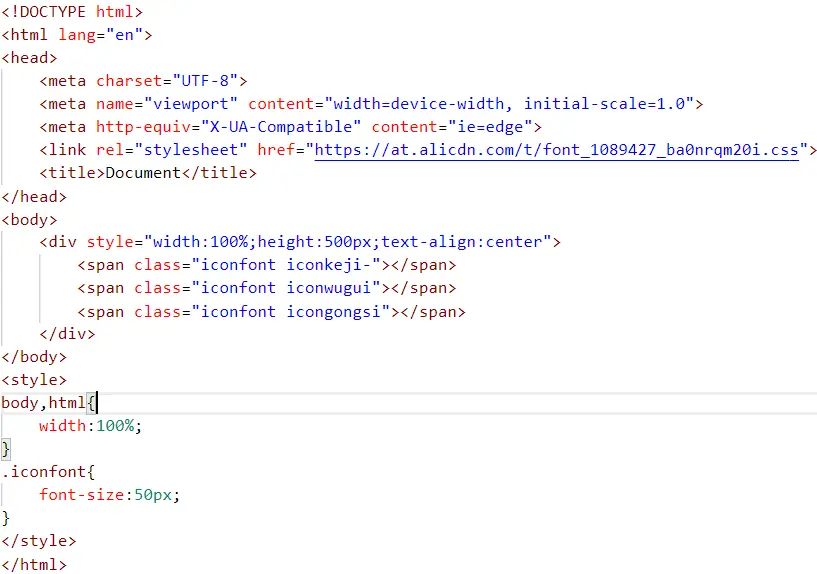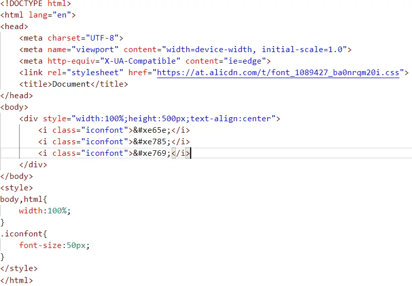 使用在线iconfont的前提是先在head标签里面引入样式文件,在Iconfont里面找到在线链接: