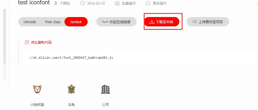 既然是使用本地的iconfont,本地肯定需要相应的iconfont文件,点击下载至本地,将文件下载解压到我们的文件夹下。