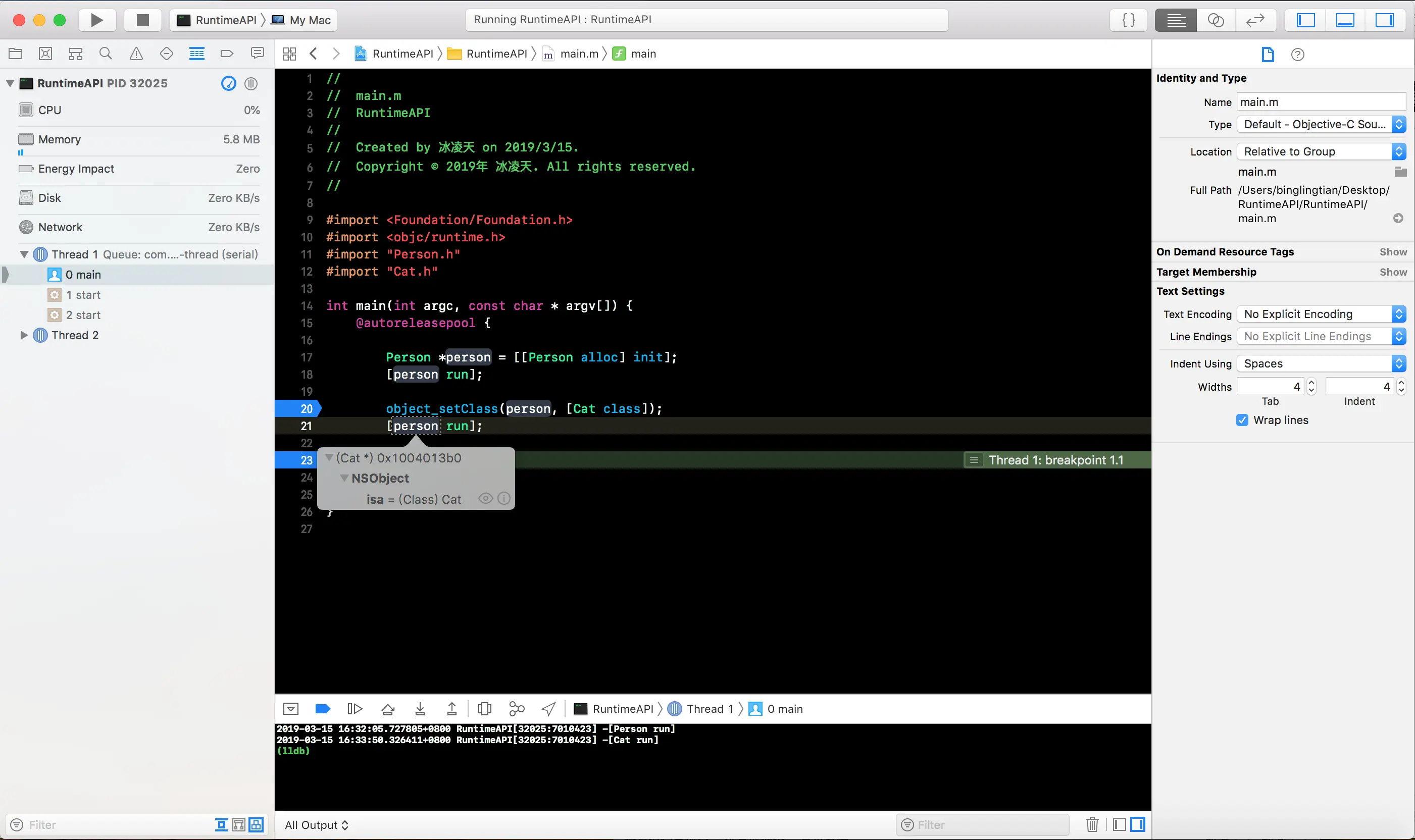 BOOL class_addMethod(Class cls, SEL name, IMP imp, const char *types)