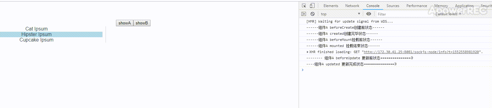 再切换至A(先清除console),再次触发了组件A的生命周期