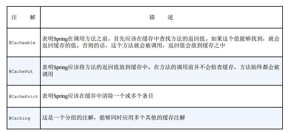 除了@Cacheable添加缓存外,springboot还为我们带了了其他几个注解