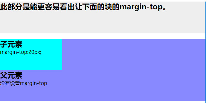 如下图,父元素没有设置margin-top,而子元素设置了margin-top:20px可以看出,父元素也一起有了边距。