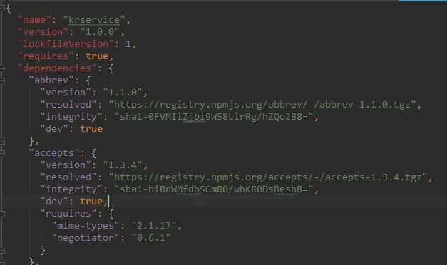 那么如何避免这种情况的发生呢,就是要确保安装的npm包版本一致,这时候,就是npm-shrinkwrap.json的作用了,简单看一下长什么样子: