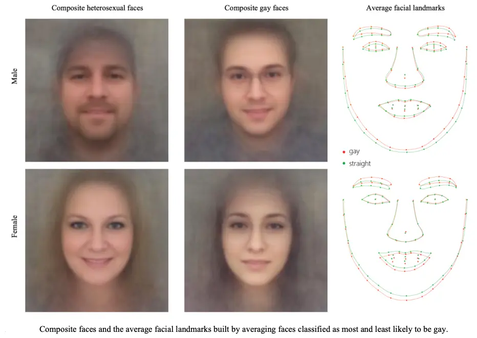 通过从社交网站摄取的面部照片,利用深度神经网络( DNN )学习了一些特征之后,再通过一些机器学习的方法,达到分辨性取向的目的。