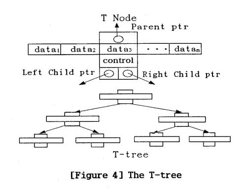 在计算机科学中,T-tree是一种二叉树,它有一个左子树和一个右子树,由主存储器数据库使用,例如Datablitz,EXtremeDB,MySQL Cluster,Oracle TimesTen和MobileLite。T树是一种平衡的索引树数据结构,针对索引和实际数据都完全保存在内存中的情况进行了优化,就像B树是针对面向块的辅助存储设备(如硬盘)上的存储而优化的索引结构。 T树寻求获得内存树结构(如AVL树)的性能优势,同时避免它们常见的大存储空间开销。T树不保留索引树节点本身内的索引数据字段的副本。 相反,它们利用了这样的事实:实际数据总是与索引一起在主存储器中,因此它们只包含指向实际数据字段的指针。