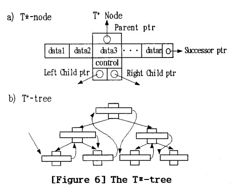 T-tree和T*-tree极为相似,他们的不同主要是T×-tree的节点结构比T-tree多了一个指向successor的指针位,指向successor的指针的存在减小了树的寻找和遍历的时间复杂度. 注:本文中关于ttree的head file :ttree.h和ttree_defs.h来源于Dan Kruchinin dkruchinin@acm.org,Github:dkruchinin/libttree