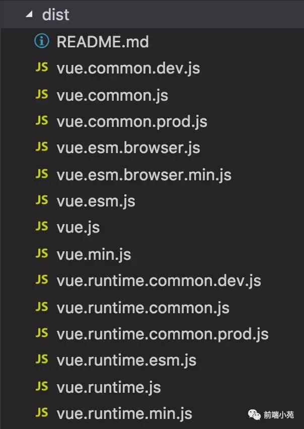 可以看到,dist下有10几种不同版本的vue文件,他们是根据不同规范(包括 CommonJS规范,ES Module,UMD)和 是否包含编译器 构建出的不同版本。