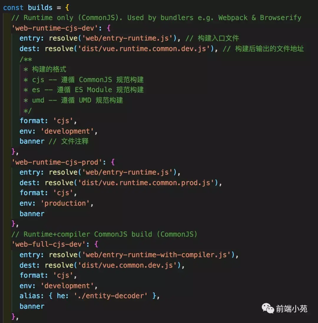 到这里,我们就清楚是如何构建出不同版本的vue代码了。