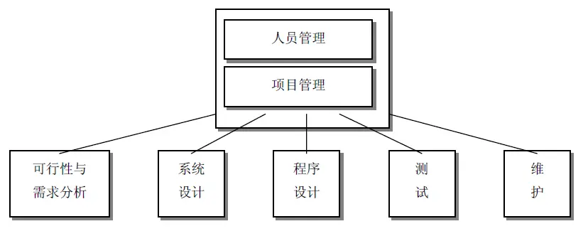林锐的《软件工程思想》虽然是二十年前的作品了,但今天阅读还是能有所启发。在书中他把软件工程包含的主要环节画在一个图上,如下: