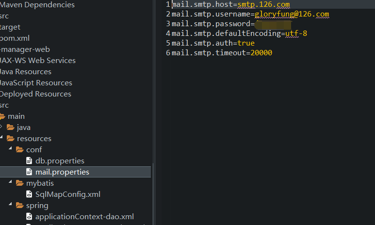 - 在spring-mybatis.xml或者applicationContext-dao.xml中注入一个邮件发送的bean接口: