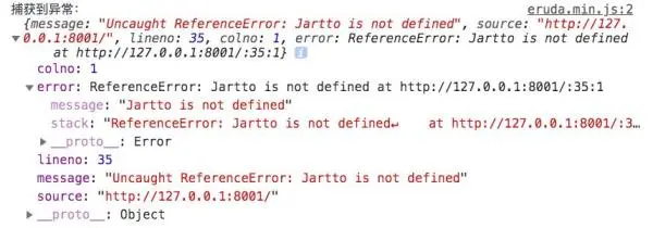 console.log('捕获到异常:',{message, source, lineno, colno, error});