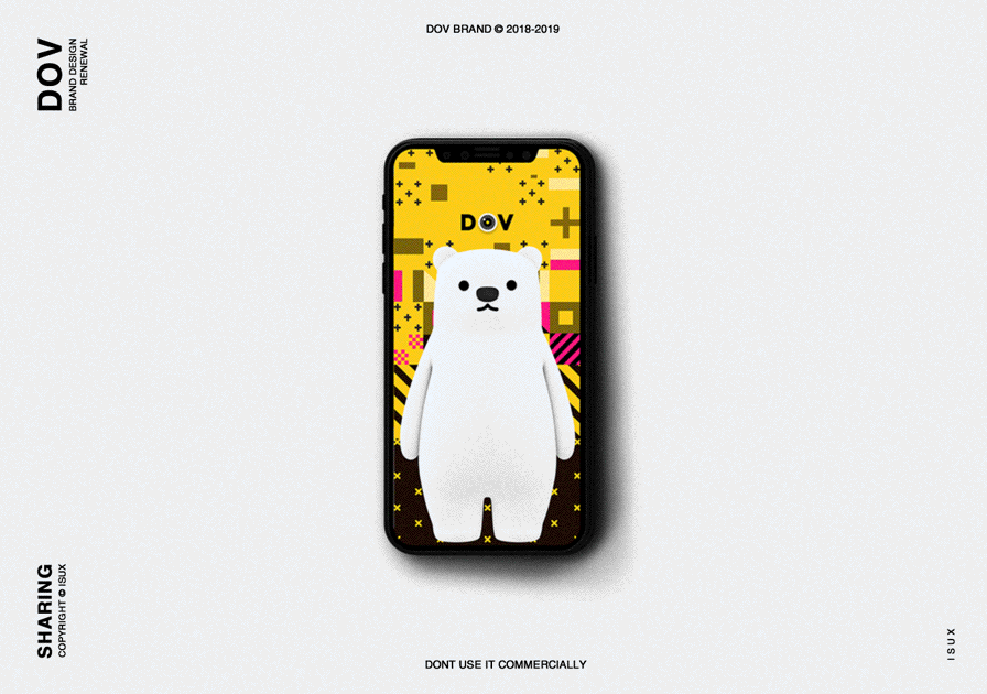 方案C:同方案B利用对比的手法塑造视觉冲击感受,同时简化了DOV的形象并带入了类似潮流公仔翻玩造型内材质的手法,兼顾了品牌符号的印象也带入潮流氛围。