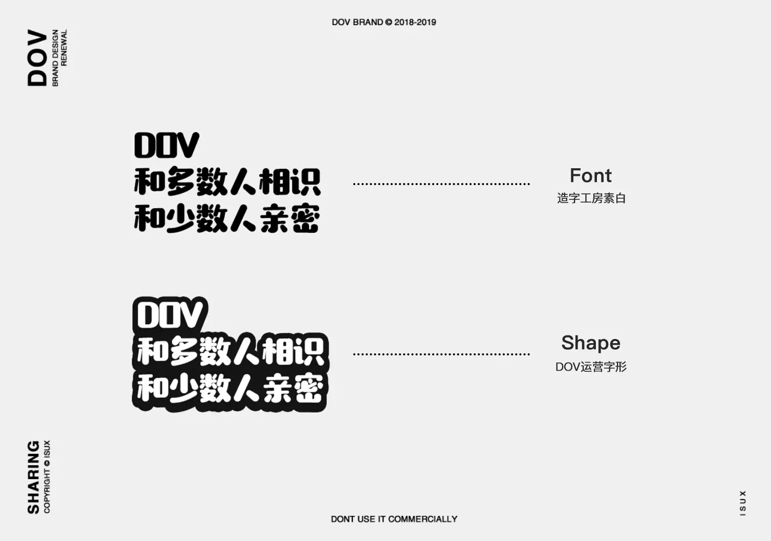 DOV运用“造字工房素白“字体,取其圆润且适合用于标题的特性大幅减少每次运营情况都需要重新写标准字的困扰,另外边缘加上立体画的手法,让DOV运营字体体量更充足,更有冲击力。