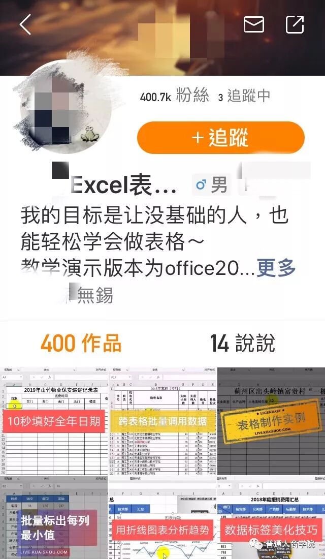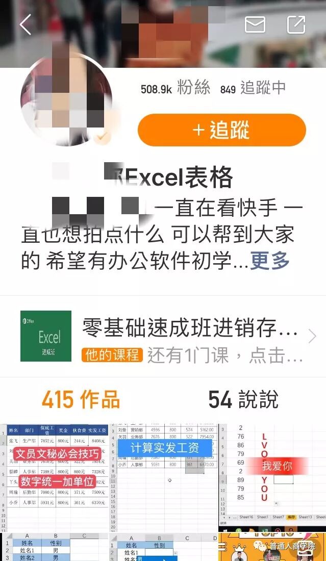 今天分享的是《快手Excel教学老师赚钱套路》。