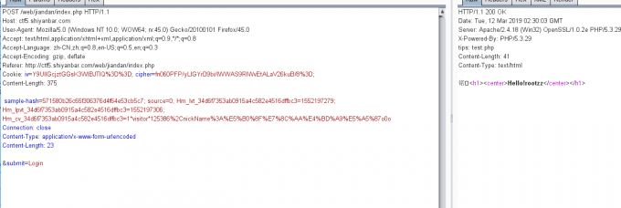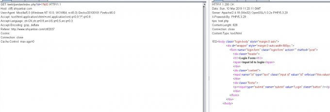 首先,输入框随便输入,然后发送请求抓包,看到返回包的头请求有tips,test.php。访问test.php即可看到源码。