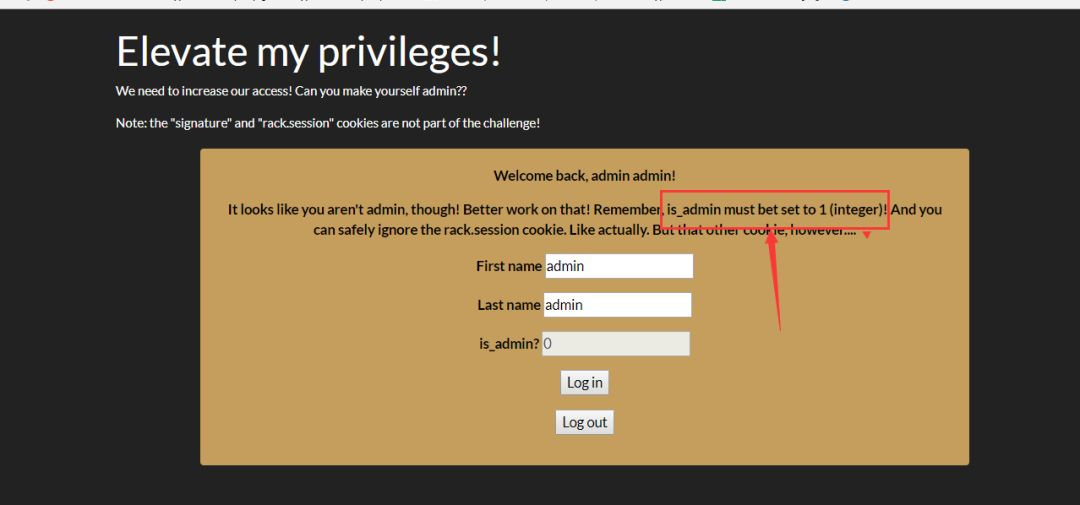 返回内容重点为红色框内的东西,需要使得第三个参数 is_admin=1即可获得flag,但是session cookie并不是这个题关注的点,接下来就是抓包分析参数。修改参数。