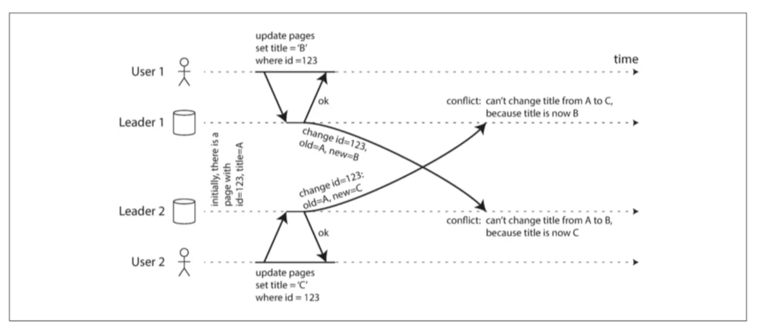 实际上数据库的操作可以分成因果操作和并发操作两种类型,并发操作可以理解为A发起set A操作,B发起set B操作,这两个操作是并发的没有先后因果关系的,数据库对于这种操作只需要确认发生的顺序就可以确定最终的值;对于因果操作:A发起insert 666,B再发起update 666,这两个操作是有依赖关系的,A成功了B才可以成功。如果数据库先接受到B的请求,那么久发生冲突了。 这样的操作叫做因果操作。(下一章会详细讨论)