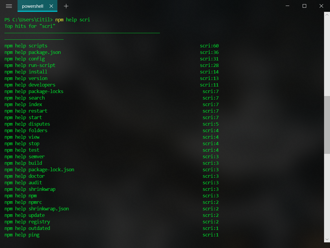 npm help scri