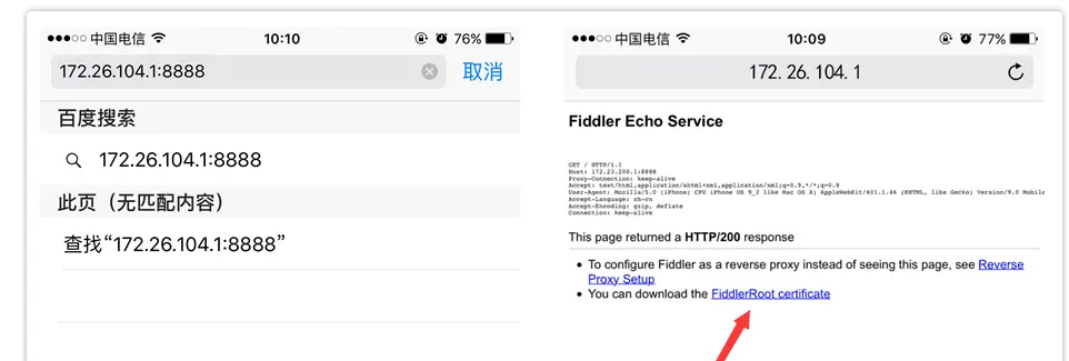 5. 在手机浏览器输入,我们在fiddler看到的ip:端口,弹出手机安装证书,安装证书