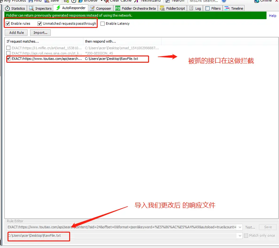 - 点击autoResponse将要更改的信息拖进匹配规则并且进行配置