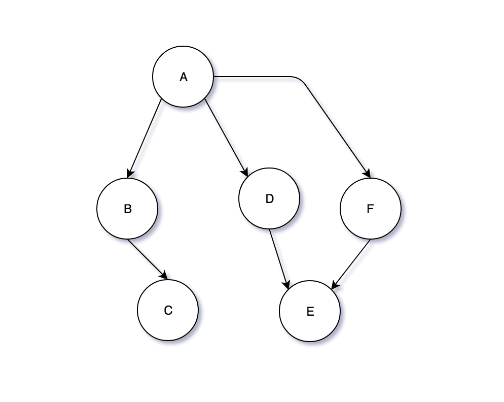 比如说,图中表示的数据结构就是节点的组合,依次从 A 到 F 命名,有六条边。虽然它的所有元素都使它们看起来像是构造了一棵树,但节点 A,D,F 都有一个循环,因此这个数据结构并不是树。