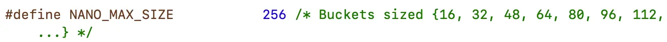 这里是libmalloc的源码,定义了NSObject最大分配内容的大小,从注释可以看出系统分配内存大小都是16的倍数。