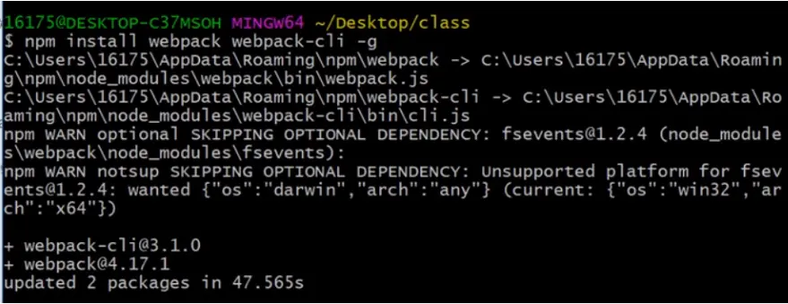 所以,全局安装完毕之后最好进行局部安装(在当前文件夹安装)一下,因为项目不同,对应依赖的webpack版本可能不同,局部安装可以避免全局安装使用统一的webpack版本出现的问题。