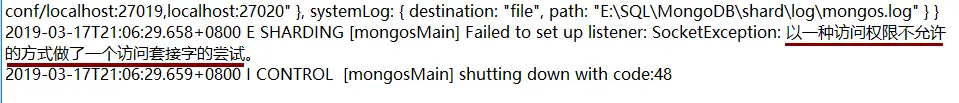 问题:在启动mongos路由服务的时候,碰到一开就自动关闭,然后打印日志: