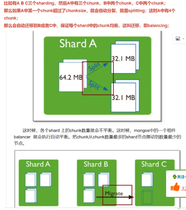 splitting:当chunk大小超过配置的chunk size,mongoDB的后台进程会把它切割成更小的chunk; 但是这个操作十分消耗IO资源