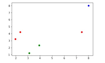 从图中可以看到,1有3票,0有2票,很明显,预测点的y值很有可能是1,而不是0。 当然,我们可以让程序自己输出预测值: