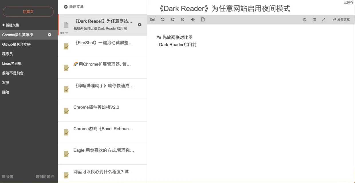 喜欢夜间模式的小伙伴, Dark Reader应该可以满足你了~