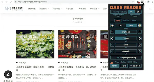 至此, DarkReader的功能已经可以满足你日常的使用, 后面的属于进阶玩法