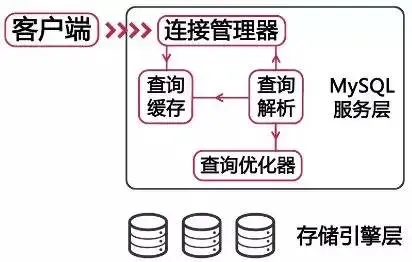 分三层:客户端->服务层->存储引擎