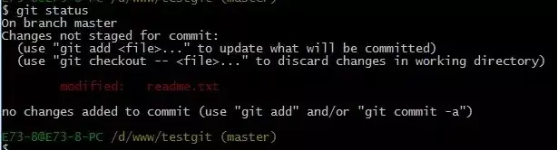 上面的命令告诉我们 readme.txt文件已被修改,但是未被提交的修改。