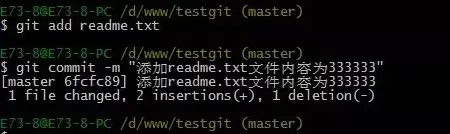 我在版本库testgit目录下新建一个记事本文件 readme.txt 内容如下:11111111