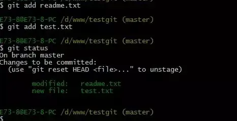 现在我们先使用git add 命令把2个文件都添加到暂存区中,再使用git status来查看下状态,如下: