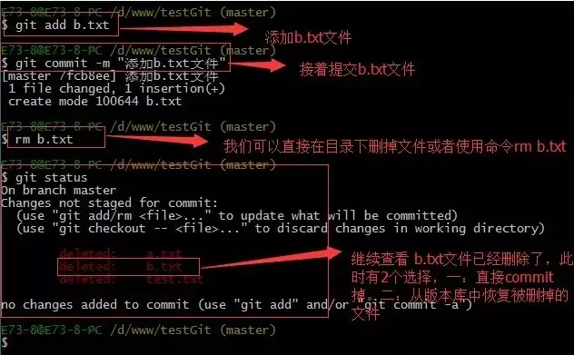 可以使用如下命令 git checkout -- b.txt,如下所示: