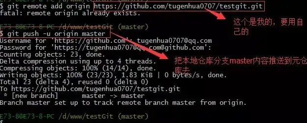 git remote add origin https://github.com/tugenhua0707/testgit.git