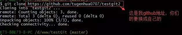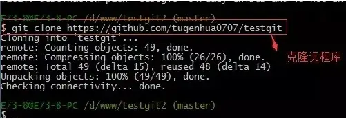 接着进入testgit2目录,进行克隆远程的库到本地来,如下: