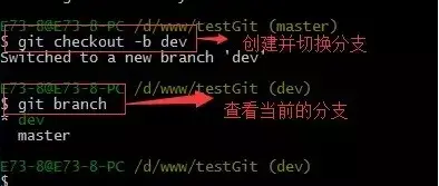 首先,我们来创建dev分支,然后切换到dev分支上。如下操作: