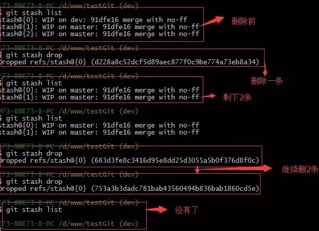 git stash apply恢复,恢复后,stash内容并不删除,你需要使用命令git stash drop来删除。 另一种方式是使用git stash pop,恢复的同时把stash内容也删除了。