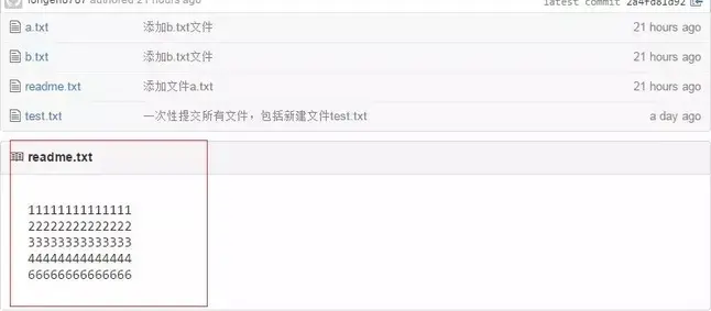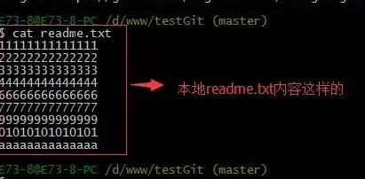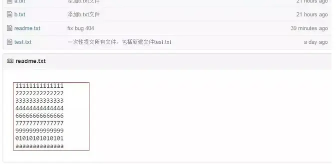 首先我们先来查看下readme.txt内容,接着添加内容77777777,如下:
