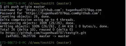 现在,我们根据GitHub的提示,在本地的testgit仓库下运行命令:
