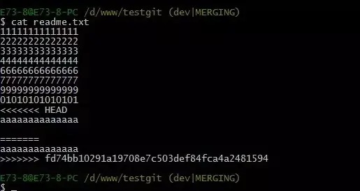 git merge命令用于合并指定分支到当前分支上,合并后,再查看readme.txt内容,可以看到,和dev分支最新提交的是完全一样的。
