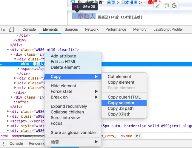 我们以 ONE-PUNCH MAN 的目录页为例子。 目录页面的分析目标是:1. 获取漫画名;2. 获取漫画每章节的链接;