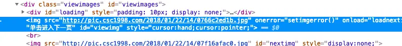 图片页就不能直接通过审查元素获取节点路径获取图片的资源链接了。图片的节点一般都不会直接在服务端渲染后,基本上都是在浏览器端渲染,因此我们直接用axios请求到的html文本是浏览器渲染前的,言外之意就是里面是没有图片的节点的!