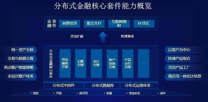 去年9月,蚂蚁金服在杭州云栖ATEC发布了分布式金融核心套件bPaaS( Business Platform As a Service ),对外开放自身沉淀的“产品合约”、“资产交换”、“资产核心”、“会计核算”、“计价” 等金融核心组件,而这款号称源自于蚂蚁金服十余年业务和技术积累的bPaaS,也被视为是2018年初蚂蚁金服决定将分布式金融核心能力对外输出后,蚂蚁金服推出的第一款重量级的产品。