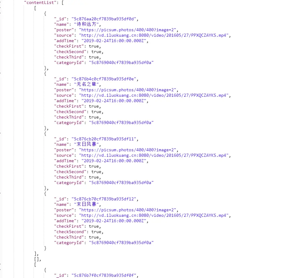 但是对于前端来说,需要的接口是category和content对应起来的,也就是期望想要如下的样子
